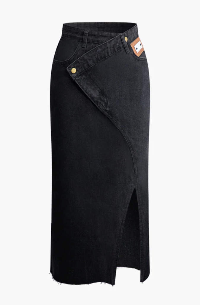 Wrap Split Denim Midi Skirt